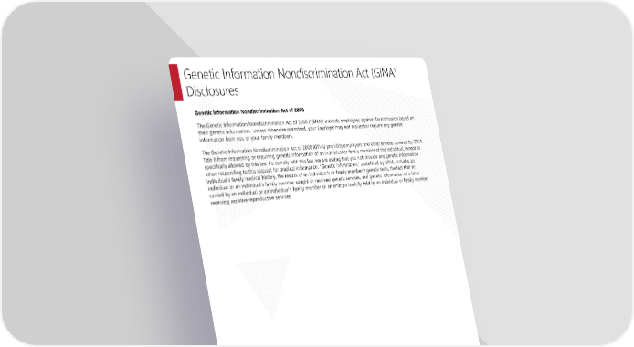 Genetic Information Nondiscrimination Act (GINA) Disclosures Genetic Information Nondiscrimination Act of 2008 The Genetic Information Nondiscrimination Act of 2008 (“GINA”) protects employees against discrimination based on their genetic information. Unless otherwise permitted, your Employer may not request or require any genetic information from you or your family members. The Genetic Information Nondiscrimination Act of 2008 (GINA) prohibits employers and other entities covered by GINA Title II from requesting or requiring genetic information of an individual or family member of the individual, except as specifically allowed by this law. To comply with this law, we are asking that you not provide any genetic information when responding to this request for medical information. “Genetic information,” as defined by GINA, includes an individual’s family medical history, the results of an individual’s or family member’s genetic tests, the fact that an individual or an individual’s family member sought or received genetic services, and genetic information of a fetus carried by an individual or an individual’s family member or an embryo lawfully held by an individual or family member receiving assistive reproductive services. Page 13 Huntington County Community School Corporation 2025 Plan Year This Compliance Overview is not intended to be exhaustive nor should any discussion or opinions be construed as legal advice. Readers should contact legal counsel for legal advice.