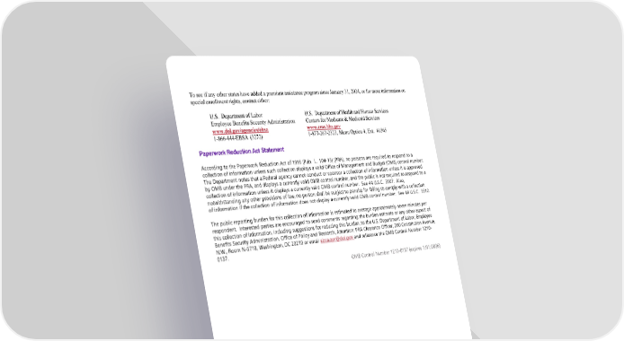 Toseeifanyotherstateshave addedapremiumassistanceprogramsinceJanuary31, 2024,orformore informationon specialenrollmentrights,contacteither: U.S. Departmentof Labor U.S. DepartmentofHealthandHuman Services EmployeeBenefitsSecurityAdministration CentersforMedicare&MedicaidServices www.dol.gov/agencies/ebsa www.cms.hhs.gov 1-866-444-EBSA (3272) 1-877-267-2323, Menu Option 4, Ext. 61565 PaperworkReductionAct Statement According to the Paperwork Reduction Act of 1995 (Pub. L. 104-13) (PRA), no persons are required to respond to a collection of information unless such collection displays a valid Office of Management and Budget (OMB) control number. The Department notes that a Federal agency cannot conduct or sponsor a collection of information unless it is approved by OMB under the PRA, and displays a currently valid OMB control number, and the public is not required to respond to a collection of information unless it displays a currently valid OMB control number. See 44 U.S.C. 3507. Also, notwithstanding any other provisions of law, no person shall be subject to penalty for failing to comply with a collection of information if the collection of information does not display a currently valid OMB control number. See 44 U.S.C. 3512. The public reporting burden for this collection of information is estimated to average approximately seven minutes per respondent. Interested parties are encouraged to send comments regarding the burden estimate or any other aspect of this collection of information, including suggestions for reducing this burden, to the U.S. Department of Labor, Employee Benefits Security Administration, Office of Policy and Research, Attention: PRA Clearance Officer, 200 Constitution Avenue, N.W., Room N-5718, Washington, DC 20210 or email ebsa.opr@dol.gov and reference the OMB Control Number 1210- 0137. OMB Control Number 1210-0137 (expires 1/31/2026) Page 12 Huntington County Community School Corporation 2025 Plan Year This Compliance Overview is not intended to be exhaustive nor should any discussion or opinions be construed as legal advice. Readers should contact legal counsel for legal advice.