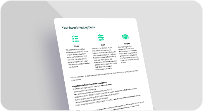 © 2024-2025 HSA Bank. HSA Bank is a division of Webster Bank, N.A., Member FDIC. Plan Administrative Services and Benefit Services are administered by Webster Servicing LLC. HSA_Invest_021425 Not Insured by FDIC or Any Other Government Agency Not Bank Guaranteed Not Bank Deposits or Obligations May Lose Value SECURITIES AND INVESTMENTS You may be required to keep a minimum in your HSA cash balance to invest funds in the HSA Invest program. The HSA Invest program is administered by DriveWealth, LLC, a FINRA registered broker dealer. LeafHouse Financial Advisors, LLC is a registered investment advisor with the U.S. Securities and Exchange Commission that selects and manages the investments. Registration does not imply a certain level of skill or training. More information about LeafHouse Financial Advisors, LLC, including investment strategies, fees and objectives, can be found in the ADV Part 2A, which is available on the Member Website. HSA Bank, DriveWealth, LLC and LeafHouse Financial Advisors, LLC are not affiliated and not responsible for the products and services provided by the other. Neither HSA Bank nor DriveWealth can provide investment advice to investors. Past performance is not indicative of future results. All investments involve risk, including loss of principal, and there is no guarantee that investment objectives will be met. The ability to replace investment losses may be limited by the annual HSA contribution limits. Your investment options You may have one or all of the investment options based on your employer program. Your option(s) will show in your online account. Simplified and efficient investment management · Enrollment before you meet the investment balance threshold. · Same-day enrollment and funding. · Real-time and fractional share trading (during market hours). · Funds remain in your HSA cash balance until invested so you can use them for qualified medical expenses. · Auto-funding so new funds go directly to the investments you’ve chosen. · Dividends and interest are automatically reinvested. · Online access to your account history, balance information, trades and more on the Member Website and app. Fees Annual asset-based fees may be applied on a quarterly basis and deducted from the investment balance. Fees are waived when a minimum is maintained in your HSA cash balance. View exact fees in your online account. Choice This option offers a simplified brokerage experience with a large range of stocks, mutual funds, exchange-traded funds (ETFs) and more. This option is ideal if you’re an experienced investor who may not need guidance from a professional. Select Get a recommended list of mutual funds, specific to your unique risk tolerance and investment objectives. All funds are selected by an SEC-registered investment advisor (RIA), organized by asset class and aligned to your investment profile. This option gives you guidance and the opportunity to make the final decision about your investments and allocations. Managed Get an even higher level of personalization, where the RIA actively manages the investments on your behalf. This option lets you go beyond the tailored guidance in the Select option and have your investments completely managed by an RIA. Visit hsabank.com or call the number on the back of your debit card for more information.