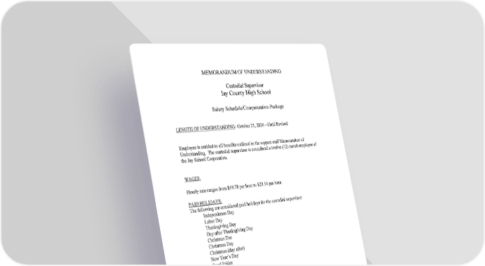 Jay School Corporation Support Staff Memorandum of Understanding
