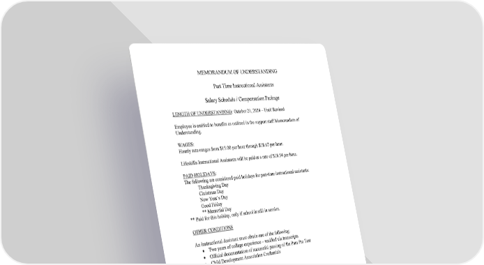 Jay School Corporation Support Staff Memorandum of Understanding