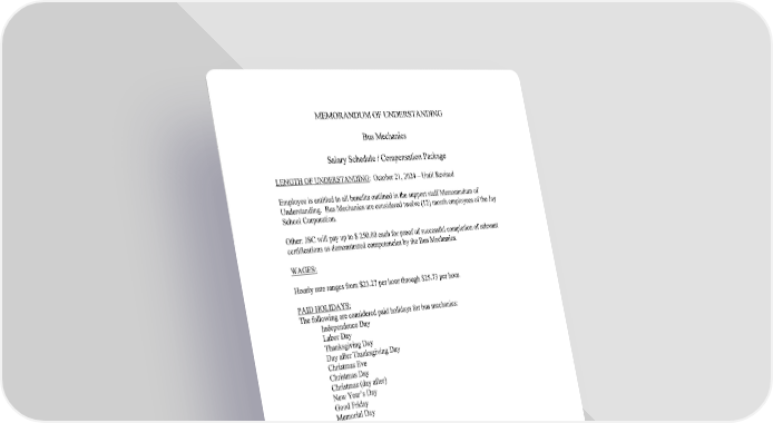 Jay School Corporation Support Staff Memorandum of Understanding