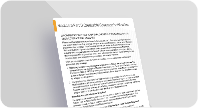 Page 1 | Inotiv | Plan Year 2026 Compliance Guide This Compliance Overview is not intended to be exhaustive nor should any discussion or opinions be construed as legal advice. Readers should contact legal counsel for legal advice. Medicare Part D Creditable Coverage Notification IMPORTANT NOTICE FROM YOUR EMPLOYER ABOUT YOUR PRESCRIPTION DRUG COVERAGE AND MEDICARE Please read this notice carefully and keep it where you can find it. This notice has information about your current prescription drug coverage with your employer and about your options under Medicare’s prescription drug coverage. This information can help you decide whether or not you want to join a Medicare drug plan. If you are considering joining, you should compare your current coverage, including which drugs are covered at what cost, with the coverage and costs of the plans offering Medicare prescription drug coverage in your area. Information about where you can get help to make decisions about your prescription drug coverage is at the end of this notice. There are two important things you need to know about your current coverage and Medicare’s prescription drug coverage: 1. Medicare prescription drug coverage became available in 2006 to everyone with Medicare. You can get this coverage if you join a Medicare Prescription Drug Plan or join a Medicare Advantage Plan (like an HMO or PPO) that offers prescription drug coverage. All Medicare drug plans provide at least a standard level of coverage set by Medicare. Some plans may also offer more coverage for a higher monthly premium. 2. Your employer has determined that the prescription drug coverage offered by the Inotiv, Inc. Healthcare plan is, on average for all plan participants, expected to pay out as much as standard Medicare prescription drug coverage pays and is therefore considered Creditable Coverage. Because your existing coverage is Creditable Coverage, you can keep this coverage and not pay a higher premium (a penalty) if you later decide to join a Medicare drug plan. When Can You Join A Medicare Drug Plan? You can join a Medicare drug plan when you first become eligible for Medicare and each year from October 15th to December 7th. However, if you lose your current creditable prescription drug coverage, through no fault of your own, you will also be eligible for a two (2) month Special Enrollment Period (SEP) to join a Medicare drug plan. What Happens To Your Current Coverage If You Decide to Join A Medicare Drug Plan? If you decide to join a Medicare drug plan, your current coverage will not be affected. If you elect to participate in both your employer-sponsored plan and Medicare Part D, your benefits may coordinate. If you do decide to join a Medicare drug plan and drop your current employer-sponsored coverage, be aware that you and your dependents will not be able to get this coverage back. If you have questions regarding your prescription drug coverage, you may contact the Plan Administrator by calling the number on the back of your ID card.