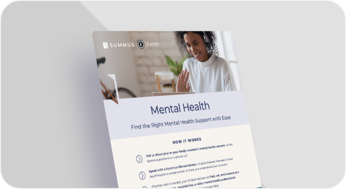 This document outlines how to easily access mental health support through the Summus platform, offering guidance from clinical advisors and connections to psychiatrists and psychologists.