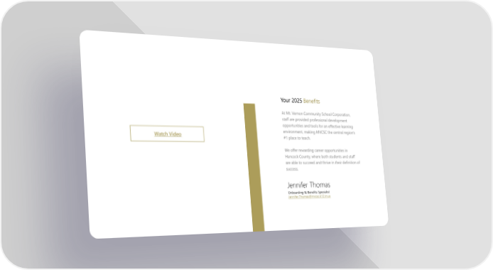 Jennifer Thomas Onboarding & Benefits Specialist [email protected] Your 2025 Benefits At Mt. Vernon Community School Corporation, staff are provided professional development opportunities and tools for an effective learning environment, making MVCSC the central region's #1 place to teach. We offer rewarding career opportunities in Hancock County, where both students and staff are able to succeed and thrive in their definition of success. Watch Video