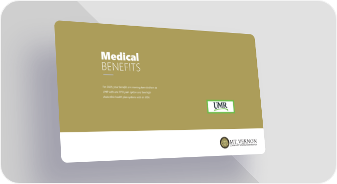 Mt. Vernon Community School Corporation Benefit Guide Page 5 Page 7Medical BENEFITS For 2025, your benefits are moving from Anthem to UMR with one PPO plan option and two high deductible health plan options with an HSA.