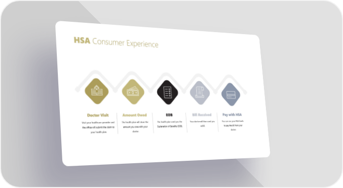 Doctor Visit Visit your healthcare provider and the office will submit the claim to your health plan. Amount Owed The health plan will share the amount you owe with your doctor. EOB The health plan send you the Explanation of Benefits (EOB). Bill Received Your doctor will then send you a bill. HSA Consumer Experience Pay with HSA You can use your HSA funds to pay the bill from your doctor.