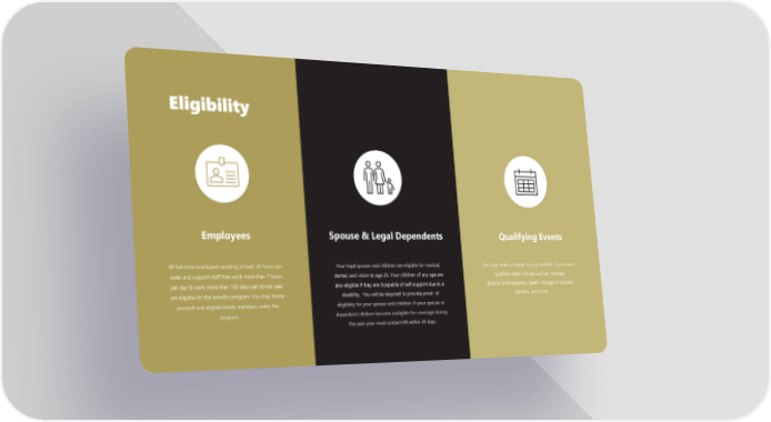Employees All full-time employees working at least 30 hours per week and support staff that work more than 7 hours per day & work more than 183 days per school year are eligible for the benefits program. You may insure yourself and eligible family members under the program. Spouse & Legal Dependents Your legal spouse and children are eligible for medical, dental, and vision to age 26. Your children of any age are also eligible if they are incapable of self-support due to a disability. You will be required to provide proof of eligibility for your spouse and children. If your spouse or dependent children become ineligible for coverage during the year your must contact HR within 30 days. Qualifying Events You may make a change to your benefits if you have a qualified status change such as: marriage divorce, birth/adoption, death, changes in spouse’s benefits, and more. Eligibility