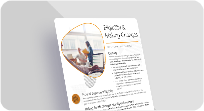 Page 3 | Inotiv | Plan Year 2026 This booklet provides only a summary of your benefits. All services described within are subject to the definitions, limitations, and exclusions set forth in each insurance carrier or providers contract. Eligibility & Making Changes 2 0 2 6 P L A N Y E A R D E T A I L S Making Benefit Changes After Open Enrollment Your medical, dental, and vision contributions are deducted on a pre-tax basis under a Section 125 Plan. Pre-tax benefits can ONLY be changed during annual open enrollment or within 30 days of the effective date of a qualifying event such as: Marriage Divorce Legal Separation Birth or adoption of a child Change in a childs dependent status Death of a Spouse, child, or other qualified dependent Commencement or termination of adoption Change in your spouses benefits or employment status Eligibility All full-time employees working 30 or more hours per week are eligible for the benefits program. For new hires, benefits are effective on the 1st of the month following your hire date. You may insure yourself, your legal spouse and eligible children under the benefit program. Children are eligible to remain on all benefits to age 26. Benefits will end at the end of the month following their 26th birthday. Your children of any age are also eligible if you support them, and they are incapable of self- support due to disability. Documentation is required. Proof of Dependent Eligibility As required by our insurance contracts, you may be required to provide proof of eligibility for your dependents. If your dependent becomes ineligible for coverage during the year, you must contact your plan administrator within 30 days. Last Day of Benefits Upon full-time separation of service, medical, dental, and vision benefits will end at the end of the month of your last day of employment . All other benefits end on your last day of employment. Compliance The offered plans meet essential and affordable guidelines in compliance with the Affordable Care Act. All Federal and State required Plan Notices can be found on our website, https://benefits.inotiv.com. You may also request a printed copy of all Notices, free of charge, upon request.