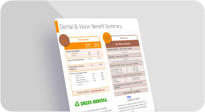 Page 8 | Inotiv | Plan Year 2026 This booklet provides only a summary of your benefits. All services described within are subject to the definitions, limitations, and exclusions set forth in each insurance carrier or providers contract. Dental & Vision Benefit Summary Delta Dental Delta Dental has three levels of benefit coverage available; you can choose from any of these networks. PPO Coverage - Offers significant discounts; no balance billing; acceptance of processing policies; and 108,000 dentist locations. Premier Coverage - Negotiated fees; no balance billing; acceptance of processing policies; and 186,000 dentist locations. Non-Participating Coverage - Balance billing and does not offer discounts. VSP Vision Standard Low Plan Premier High Plan Annual Deductible Individual Family $25 $75 $25 $75 Annual Plan Maximum $1,500 $2,000 Orthodontia Lifetime Maximum N/A $1,500 Plan Coinsurance Levels Preventive Basic Services Major Services Orthodontia (Child or Adult) 100% 50% 25% N/A 100% 80% 50% 50% Provider Directory: www.deltadentalin.com VSP Choice Network Routine Eye Exam - (once every 12 months) $10 copay Materials - (once every 24 months) $25 Copay $150-$200 allowance then 20% off any remaining balance Standard Plastic Lenses - (once every 12 months) Single vision (1 pair) Bifocal lenses (1 pair) Trifocal lenses (1 pair) $25 copay $25 copay $25 copay Contact Lenses - (once every 12 months in lieu of glasses) Elective Non-Elective $150 allowance Covered in full Lens Enhancements (Progressive, Anti-Glare, Scratch Resistant) $0 Provider Directory: www.VSP.com Members can visit vsp.com to find VSP in- network doctor, discover special offers and savings, and find the eye care and eyewear information they need. When members create an account on vsp.com, they can: View personalized benefit information . Print a member ID card, if they prefer to have one. Customize their email preferences. Utilize the Premier Program to maximize your savings.