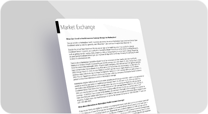 Market Exchange When Can I Enroll in Health Insurance Coverage through the Marketplace? You can enroll in a Marketplace health insurance plan during the annual Marketplace Open Enrollment Period. Open Enrollment varies by state but generally starts November 1 and continues through at least December 15. Outside the annual Open Enrollment Period, you can sign up for health insurance if you qualify for a Special Enrollment Period. In general, you qualify for a Special Enrollment Period if you’ve had certain qualifying life events, such as getting married, having a baby, adopting a child, or losing eligibility for other health coverage. Depending on your Special Enrollment Period type, you may have 60 days before or 60 days following the qualifying life event to enroll in a Marketplace plan. There is also a Marketplace Special Enrollment Period for individuals and their families who lose eligibility for Medicaid or Children’s Health Insurance Program (CHIP) coverage on or after March 31, 2023, through July 31, 2024. Since the onset of the nationwide COVID-19 public health emergency, state Medicaid and CHIP agencies generally have not terminated the enrollment of any Medicaid or CHIP beneficiary who was enrolled on or after March 18, 2020, through March 31, 2023. As state Medicaid and CHIP agencies resume regular eligibility and enrollment practices, many individuals may no longer be eligible for Medicaid or CHIP coverage starting as early as March 31, 2023. The U.S. Department of Health and Human Services is offering a temporary Marketplace Special Enrollment period to allow these individuals to enroll in Marketplace coverage. Marketplace-eligible individuals who live in states served by HealthCare.gov and either- submit a new application or update an existing application on HealthCare.gov between March 31, 2023 and July 31, 2024, and attest to a termination date of Medicaid or CHIP coverage within the same time period, are eligible for a 60-day Special Enrollment Period. That means that if you lose Medicaid or CHIP coverage between March 31, 2023, and July 31, 2024, you may be able to enroll in Marketplace coverage within 60 days of when you lost Medicaid or CHIP coverage. In addition, if you or your family members are enrolled in Medicaid or CHIP coverage, it is important to make sure that your contact information is up to date to make sure you get any information about changes to your eligibility. To learn more, visit HealthCare.gov or call the Marketplace Call Center at 1-800-318-2596. TTY users can call 1-855-889-4325. What about Alternatives to Marketplace Health Insurance Coverage? If you or your family are eligible for coverage in an employment-based health plan (such as an employer-sponsored health plan), you or your family may also be eligible for a Special Enrollment Period to enroll in that health plan in certain circumstances, including if you or your dependents were enrolled in Medicaid or CHIP coverage and lost that coverage. Generally, you have 60 days after the loss of Medicaid or CHIP coverage to enroll in an employment- based health plan, but if you and your family lost eligibility for Medicaid or CHIP coverage between March 31, 2023 and July 10, 2023, you can request this special enrollment in the employment-based health plan through September 8, 2023. Confirm the deadline with Noblesville Schools or your employment-based health plan. Alternatively, you can enroll in Medicaid or CHIP coverage at any time by filling out an application through the Marketplace or applying directly through your state Medicaid agency. Visit https://www.healthcare.gov/medicaid- chip/getting-medicaid-chip/ for more details. How Can I Get More Information? For more information about your coverage offered through your employment, please check your health plan’s summary plan description or contact. The Marketplace can help you evaluate your coverage options, including your eligibility for coverage through the Marketplace and its cost. Please visit HealthCare.gov for more information, including an online application for health insurance coverage and contact information for a Health Insurance Marketplace in your area. Page 30 Noblesville Schools Plan Year 2025 This Compliance Overview is not intended to be exhaustive nor should any discussion or opinions be construed as legal advice. Readers should contact legal counsel for legal advice.