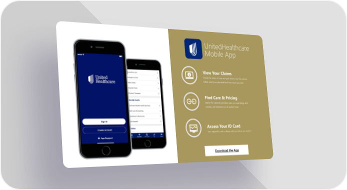 View Your Claims Check the status of new and past claims. See the amount billed, what your plan paid and how much you owe. Find Care & Pricing Search for network providers near you, see ratings and reviews, and estimate out-of-pocket costs. Access Your ID Card Your digital ID card is always with you when you need it. Download the App UnitedHealthcare Mobile App
