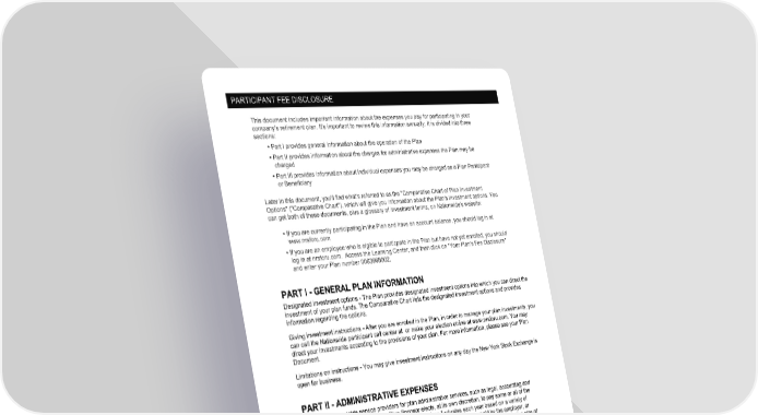 PARTICIPANT FEE DISCLOSURE Page 2 of 11 This document includes important information about the expenses you pay for participating in your company's retirement plan. It's important to review this information annually. It is divided into three sections: Part I provides general information about the operation of the Plan Part II provides information about the charges for administrative expenses the Plan may be charged Part III provides information about individual expenses you may be charged as a Plan Participant or Beneficiary Later in this document, you'll find what's referred to as the "Comparative Chart of Plan Investment Options" ("Comparative Chart"), which will give you information about the Plan's investment options. You can get both of these documents, plus a glossary of investment terms, on Nationwide's website: If you are currently participating in the Plan and have an account balance, you should log in at www.nrsforu.com If you are an employee who is elgible to particpate in the Plan but have not yet enrolled, you should log in at nrsforu.com. Access the Learning Center, and then click on "Your Plan's Fee Disclosure" and enter your Plan number 0063968002. PART I - GENERAL PLAN INFORMATION Designated investment options - The Plan provides designated investment options into which you can direct the investment of your plan funds. The Comparative Chart lists the designated investment options and provides information regarding the options. Giving investment instructions - After you are enrolled in the Plan, in order to manage your plan investments, you can call the Nationwide participant call center at or make your election online at www.nrsforu.com. You may direct your investments according to the provisions of your plan. For more information, please see your Plan Document. Limitations on instructions - You may give investment instructions on any day the New York Stock Exchange is open for business. PART II - ADMINISTRATIVE EXPENSES The Plan pays outside service providers for plan administrative services, such as legal, accounting and recordkeeping services, unless the Plan Sponsor elects, at its own discretion, to pay some or all of the plan administrative expenses. The cost for these services fluctuates each year based on a variety of factors. To the extent these expenses are not charged against forfeitures or paid by the employer, or reimbursed by a third party, the Plan charges these expenses pro rata (i.e., based on the relative size of each account), at a flat rate per participant, or based on asset size against participants accounts. Some of your plan's operating expenses are paid from the total annual operating expenses of one or more of the designated investment alternatives. For more information, please see the Comparative Chart of Investment Options. Please note that administrative service fees are subject to change. Fees that may be charged by Nationwide, your retirement plan provider Explicit Asset Fee(s) - taken from participant account balance Explicit Asset Fee 0.1% per year