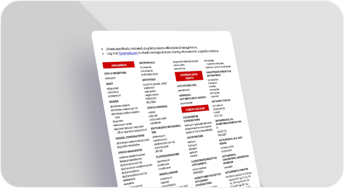 2 • Unless specifically indicated, drug list products will include all dosage forms. • Log in to Caremark.com to check coverage and cost sharing information for a specific medicine. • • ANALGESICS COX-2 INHIBITORS celecoxib GOUT allopurinol colchicine probenecid NSAIDS diclofenac sodium diclofenac sodium gel 1% diclofenac sodium solution 1.5% ibuprofen meloxicam tablet naproxen (except naproxen CR or naproxen suspension) NSAIDS, COMBINATIONS diclofenac sodium-misoprostol ibuprofen-famotidine OPIOID ANALGESICS codeine-acetaminophen fentanyl transdermal hydrocodone ext-rel hydrocodone-acetaminophen hydromorphone hydromorphone ext-rel methadone morphine morphine ext-rel oxycodone oxycodone-acetaminophen tramadol (except tramadol tablet 100 mg) tramadol ext-rel tablet OPIOID PARTIAL AGONISTS buprenorphine transdermal BELBUCA ANTI-INFECTIVES ANTHELMINTICS ivermectin tablet EMVERM ANTIFUNGALS fluconazole itraconazole terbinafine tablet ANTIVIRALS acyclovir capsule, tablet oseltamivir valacyclovir valganciclovir PAXLOVID RELENZA CEPHALOSPORINS cefdinir cefprozil cefuroxime axetil cephalexin ERYTHROMYCINS/MACROLI DES azithromycin clarithromycin clarithromycin ext-rel erythromycins DIFICID FLUOROQUINOLONES ciprofloxacin levofloxacin moxifloxacin MISCELLANEOUS clindamycin linezolid metronidazole nitrofurantoin (except NDC 16571074024) pyrimethamine sulfamethoxazole- trimethoprim vancomycin capsule XIFAXAN 550 MG PENICILLINS amoxicillin amoxicillin-clavulanate dicloxacillin penicillin vk TETRACYCLINES doxycycline hyclate 20 mg doxycycline hyclate capsule minocycline tetracycline ANTINEOPLASTIC AGENTS ANTIMETABOLITES pemetrexed HORMONAL ANTINEOPLASTIC AGENTS bicalutamide CARDIOVASCULAR ACE INHIBITOR COMBINATIONS fosinopril-hydrochlorothiazide lisinopril-hydrochlorothiazide quinapril-hydrochlorothiazide ACE INHIBITORS enalapril fosinopril lisinopril quinapril ramipril ALDOSTERONE RECEPTOR ANTAGONISTS spironolactone KERENDIA ANGIOTENSIN II RECEPTOR ANTAGONIST COMBINATIONS amlodipine-olmesartan amlodipine-telmisartan amlodipine-valsartan amlodipine-valsartan- hydrochlorothiazide candesartan- hydrochlorothiazide irbesartan-hydrochlorothiazide losartan-hydrochlorothiazide olmesartan-amlodipine- hydrochlorothiazide olmesartan- hydrochlorothiazide telmisartan- hydrochlorothiazide valsartan-hydrochlorothiazide ANGIOTENSIN II RECEPTOR ANTAGONISTS candesartan irbesartan losartan olmesartan telmisartan valsartan ANTIARRHYTHMICS amiodarone disopyramide sotalol MULTAQ ANTILIPEMICS, ACL INHIBITORS/COMBINATION S NEXLETOL NEXLIZET ANTILIPEMICS, BILE ACID RESINS cholestyramine colesevelam ANTILIPEMICS, CHOLESTEROL ABSORPTION INHIBITOR ezetimibe ANTILIPEMICS, FIBRATES fenofibrate (except fenofibrate capsule 30 mg, 50 mg, 90 mg, 130 mg; fenofibrate tablet 40 mg, 120 mg) fenofibric acid delayed-rel ANTILIPEMICS, HMG-COA REDUCTASE INHIBITORS atorvastatin fluvastatin lovastatin pitavastatin pravastatin rosuvastatin simvastatin