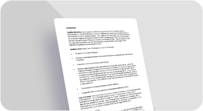 DEFINITIONS Qualified Beneficiary means a person covered by this group health Plan immediately before a Qualifying Event. A Qualified Beneficiary may be an Employee, the spouse of a covered Employee, or the Dependent Child of a covered Employee. This includes a Child who is born to or Placed for Adoption with a covered Employee during the Employee’s COBRA coverage period if the Child is enrolled within the Plan’s Special Enrollment Provision for newborns and adopted Children. This also includes a Child who was receiving benefits under this Plan pursuant to a Qualified Medical Child Support Order (QMCSO) immediately before the Qualifying Event. Qualifying Event means Loss of Coverage due to one of the following: • The death of the covered Employee. • Voluntary or involuntary termination of the covered Employee’s employment (other than for gross misconduct). • A reduction in work hours of the covered Employee. • Divorce or legal separation of the covered Employee from the Employee’s spouse. (Also, if an Employee terminates coverage for his or her spouse in anticipation of a divorce or legal separation, and a divorce or legal separation later occurs, then the later divorce or legal separation may be considered a Qualifying Event even though the ex-spouse lost coverage earlier. If the ex-spouse notifies the Plan or the COBRA administrator in writing within 60 calendar days after the divorce or legal separation and can establish that the coverage was originally eliminated in anticipation of the divorce or legal separation, then COBRA coverage may be available for the period after the divorce or legal separation.) • The covered former Employee becomes enrolled in Medicare. • A Dependent Child no longer qualifies as a Dependent as defined by the Plan. Loss of Coverage means any change in the terms or conditions of coverage in effect immediately before a Qualifying Event. Loss of Coverage includes a change in coverage terms, a change in plans, termination of coverage, partial Loss of Coverage, an increase in Employee cost, and other changes that affect terms or conditions of coverage. Loss of Coverage does not always occur immediately after a Qualifying Event, but must always occur within the applicable 18- or 36-month coverage period. A Loss of Coverage that is not caused by a Qualifying Event may not trigger COBRA rights. IF YOU HAVE QUESTIONS Questions concerning Your Plan or Your COBRA continuation coverage rights should be addressed to the contact or contacts identified below. For more information about Your rights under ERISA, and for more information about COBRA, the Patient Protection and Affordable Care Act, and other laws affecting group health plans, contact the nearest Regional or District Office of the U.S. Department of Labor's Employee Benefits Security Administration (EBSA) in Your area or visit the EBSA website at www.dol.gov/ebsa. (Addresses and phone numbers of Regional and District EBSA Offices are available through EBSA's website.) For more information about the Marketplace, visit www.healthcare.gov. The Plan Administrator: DEPAUW UNIVERSITY 313 LOCUST ST GREENCASTLE IN 46135 The COBRA Administrator -50- 7670-00-413597