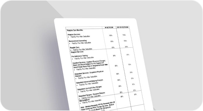 IN-NETWORK OUT-OF-NETWORK Hospice Care Benefits: Hospice Services: • Paid By Plan After Deductible 100% 100% Bereavement Counseling: • Paid By Plan After Deductible 100% 100% Respite Care: • Paid By Plan After Deductible 100% 100% Hospital Services: Pre-Admission Testing: • Paid By Plan After Deductible 80% 60% Inpatient Services / Inpatient Physician Charges; Room And Board Subject To The Payment Of Semi-Private Room Rate Or Negotiated Room Rate: • Paid By Plan After Deductible 80% 60% Outpatient Services / Outpatient Physician Charges: • Paid By Plan After Deductible 80% 60% Outpatient Advanced Imaging Charges: • Paid By Plan After Deductible 80% 60% Outpatient Lab And X-Ray Charges: • Paid By Plan After Deductible 80% 60% Outpatient Surgery / Surgeon Charges: • Paid By Plan After Deductible 80% 60% Manipulations: • Paid By Plan After Deductible 80% 60% Note: Medical Necessity Will Be Reviewed After 60 Visits Combined With Therapy Services. Medical Necessity Review Is Based On Chiropractic Designation And Procedure Code. Maternity: Routine Prenatal Services: • Paid By Plan After Deductible 100% 60% (Deductible Waived) Non-Routine Prenatal Services, Delivery, And Postnatal Care: • Paid By Plan After Deductible 80% 60% Mental Health, Substance Use Disorder, And Chemical Dependency Benefits: • Paid By Plan After Deductible 80% 60% Oral Surgery: • Paid By Plan After In-Network Deductible 80% 80% -18- 7670-00-413597