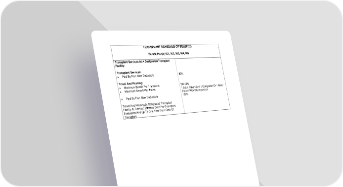 TRANSPLANT SCHEDULE OF BENEFITS Benefit Plan(s) 001, 002, 003, 004, 005 Transplant Services At A Designated Transplant Facility: Transplant Services: • Paid By Plan After Deductible 80% Travel And Housing: • Maximum Benefit Per Transplant $10,000 • Maximum Benefit Per Travel 1 Adult Patient And 1 Companion Or 1 Minor Patient With 2 Companions • Paid By Plan After Deductible 100% Travel And Housing At Designated Transplant Facility At Contract Effective Date/Pre-Transplant Evaluation And Up To One Year From Date Of Transplant. -29- 7670-00-413597