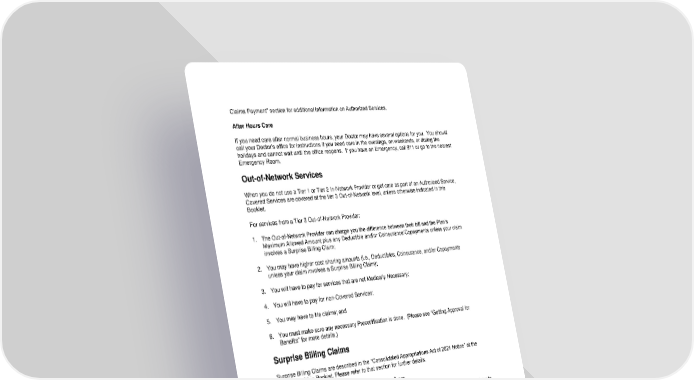 33 Claims Payment section for additional information on Authorized Services. After Hours Care If you need care after normal business hours, your Doctor may have several options for you. You should call your Doctors office for instructions if you need care in the evenings, on weekends, or during the holidays and cannot wait until the office reopen s. If you have an Emergency, call 911 or go to the nearest Emergency Room. Out - of - Network Services When you do not use a Tier 1 or Tier 2 In - Network Provider or get care as part of an Authorized Service, Covered Services are covered at the tier 3 Out - of - Network level, unless otherwise indicated in this Booklet. For services from a Tier 3 Out - of - Network Provider: 1. The Out - of - Network Provider can charge you the difference between their bill and the Plans Maximum Allowed Amount plus any Deductible and/or Coinsurance/Copayments unless your claim involves a Surprise Billing Claim; 2. You may have higher cost sharing amounts (i.e., Deductibles, Coinsurance, and/or Copayments unless your claim involves a Surprise Billing Claim); 3. You will have to pay for services that are not Medically Necessary; 4. You will have to pay for non - Covered Services; 5. You may have to file claims; and 6. You must make sure any necessary Precertification is done. (Please see Getting Approval for Benefits for more details.) Surprise Billing Claims Surprise Billing Claims are described in the Consolidated Appropriations Act of 2021 Notice at the beginning of this Booklet. Please refer to that section for further details. Connect with Us Using Our Mobile App As soon as you enroll in this Plan, you should download our mobile app. You can find details on how to do this on our website, www.anthem.com . Our goal is to make it easy for you to find answers to your questions. You can chat with us live in the app . How to Find a Provider in the Network There are several ways you can find out if a Provider or Facility is in the network for this Plan. You can also find out where they are located and details about their license or training. See your Plans directory of In - Network Providers at www.anthem.com , which lists the Doctors, Providers, and Facilities that participate in this Plans network. Search for a Provider in our mobile app .