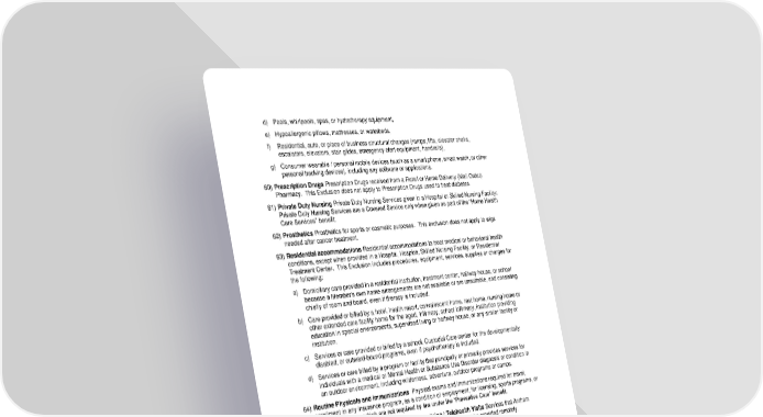 d) Pools, whirlpools, spas, or hydrotherapy equipment, e) Hypoallergenic pillows, mattresses, or waterbeds, f) Residential, auto, or place of business structural changes (ramps, lifts, elevator chairs, escalators, elevators, stair glides, emergency alert equipment, handrails), g) Consumer wearable / personal mobile devices (such as a smart phone, smart watch, or other personal tracking devices), including any software or applications. 60) Prescription Drugs Prescription Drugs received from a Retail or Home Delivery (Mail Order) Pharmacy. This Exclusion does not apply to Prescription Drugs used to treat diabetes. 61) Private Duty Nursing Private Duty Nursing Services given in a Hospital or Skilled Nursing Facility: Private Duty Nursing Services are a Covered Service only when given as part of the “Home Health Care Services” benefit. 62) Prosthetics Prosthetics for sports or cosmetic purposes. This exclusion does not apply to wigs needed after cancer treatment. 63) Residential accommodations Residential accommodations to treat medical or behavioral health conditions, except when provided in a Hospital, Hospice, Skilled Nursing Facility, or Residential Treatment Center. This Exclusion includes procedures, equipment, services, supplies or charges for the following: a) Domiciliary care provided in a residential institution, treatment center, halfway house, or school because a Member’s own home arrangements are not available or are unsuitable, and consisting chiefly of room and board, even if therapy is included. b) Care provided or billed by a hotel, health resort, convalescent home, rest home, nursing home or other extended care facility home for the aged, infirmary, school infirmary, institution providing education in special environments, supervised living or halfway house, or any similar facility or institution. c) Services or care provided or billed by a school, Custodial Care center for the developmentally disabled, or outward-bound programs, even if psychotherapy is included. d) Services or care billed by a program or facility that principally or primarily provides services for individuals with a medical or Mental Health or Substance Use Disorder diagnosis or condition in an outdoor environment, including wilderness, adventure, outdoor programs or camps. 64) Routine Physicals and Immunizations Physical exams and immunizations required for travel, enrollment in any insurance program, as a condition of employment, for licensing, sports programs, or for other purposes, which are not required by law under the “Preventive Care” benefit. 65) Services Not Appropriate for Virtual Telemedicine / Telehealth Visits Services that Anthem determines require in-person contact and/or equipment that cannot be provided remotely. 66) Stand-By Charges Stand-by charges of a Doctor or other Provider. 67) Sterilization Services to reverse an elective sterilization. 68) Surrogate Mother Services Services or supplies for a person not covered under this Plan for a surrogate pregnancy (including, but not limited to, the bearing of a child by another woman for an infertile couple). 69) Temporomandibular Joint Treatment Fixed or removable appliances which move or reposition the teeth, fillings, or prosthetics (crowns, bridges, dentures). 70) Travel Costs Mileage, lodging, meals, and other Member-related travel costs except as described in this Plan. 71) Vein Treatment Treatment of varicose veins or telangiectatic dermal veins (spider veins) by any method (including sclerotherapy or other surgeries) for cosmetic purposes. 72