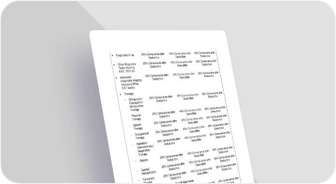 • Diagnostic X-ray 20% Coinsurance after 40% Coinsurance after 50% Coinsurance after Deductible Deductible Deductible • Other Diagnostic 20% Coinsurance after 40% Coinsurance after 50% Coinsurance after Tests: Hearing, Deductible Deductible Deductible EKG, EEG etc. • Advanced 20% Coinsurance after 40% Coinsurance after 50% Coinsurance after Diagnostic Imaging Deductible Deductible Deductible (including MRIs, CAT scans) • Therapy: - Chiropractic / 20% Coinsurance after 40% Coinsurance after 50% Coinsurance after Osteopathic / Deductible Deductible Deductible Manipulative Therapy - Physical 20% Coinsurance after 40% Coinsurance after 50% Coinsurance after Therapy Deductible Deductible Deductible - Speech 20% Coinsurance after 40% Coinsurance after 50% Coinsurance after Therapy Deductible Deductible Deductible - Occupational 20% Coinsurance after 40% Coinsurance after 50% Coinsurance after Therapy Deductible Deductible Deductible - Radiation / 20% Coinsurance after 40% Coinsurance after 50% Coinsurance after Chemotherapy / Deductible Deductible Deductible Respiratory Therapy - Dialysis 20% Coinsurance after 40% Coinsurance after 50% Coinsurance after Deductible Deductible Deductible - Cardiac 20% Coinsurance after 40% Coinsurance after 50% Coinsurance after Rehabilitation Deductible Deductible Deductible - Pulmonary 20% Coinsurance after 40% Coinsurance after 50% Coinsurance after Therapy Deductible Deductible Deductible See “Therapy Services” for details on Benefit Maximums. • Prescription Drugs 20% Coinsurance after 40% Coinsurance after 50% Coinsurance after Administered in an Deductible Deductible Deductible Outpatient Facility (other than allergy serum) Physical Therapy See “Therapy Services.” Preventive Care No Copayment, No Copayment, 50% Coinsurance after Deductible, or Deductible, or Deductible Coinsurance Coinsurance 26