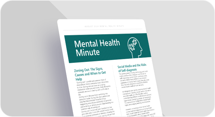 AUGUST 2024 MENTAL HEALTH MINUTE Mental Health Minute Zoning Out: The Signs, Social Media and the Risks Causes and When to Get of Self-diagnosis Help The growing trend of using technology and social “Zoning out” is a mild and common form of media platforms like Instagram and TikTok for dissociation. Nearly everyone does it from time self-diagnosing mental health conditions raises to time. Zoning out can serve as a coping concerns. While these platforms can enhance mechanism when you are bored, tired, distracted, awareness of mental health issues, they also pose stressed, anxious or dealing with a difficulty in risks. Accurate diagnosis is crucial for effective life. mental health treatment and recovery. Zoning out is like your brain switching into Self-diagnosis can signify proactive mental health autopilot mode. During this short period, you management. Seeking mental health information may feel disconnected from the things on social media can offer benefits, such as happening around you and briefly forget what understanding different conditions and personal you’re doing or where you are. Daydreaming is a experiences, prompting greater self-awareness. common way of zoning out. This exposure can destigmatize mental health Zoning out is a normal brain function but has topics, encouraging learning and discussion. pros and cons. It can offer a brief mental break from external pressures or stresses, allowing the However, consuming online mental health mind to recharge. However, zoning out can lead content and self-diagnosing carry significant to errors or accidents during critical tasks. risks. Social media facilitates rapid dissemination Consider these strategies to help you refocus and of misinformation about mental health not zone out during less-than-ideal times: conditions. The DSM-5 TR categorizes nearly 300 • Identify patterns - track when you’re zoning mental disorders, each presenting uniquely in out to help identify any patterns of mind- individuals, complicating accurate diagnosis. wandering. Incorrect self-diagnosis may divert attention from • Activate your senses - ground yourself by effective coping strategies or treatments. breathing in a strong fragrance, candy with an In summary, while accessing mental health intense flavor or running cold or warm water information online can be beneficial, caution is over your hands. essential to avoid potential pitfalls associated • Take breaks - take short, frequent breaks with inaccurate self-diagnosis and misinformation during the day to stretch, rest and fuel up with spread on social media. a snack to increase concentration. 250 West 96th Street, Suite 350 Office: Indianapolis, IN 46220 Population Health: LHDbenefits.com PopulationHealth@lhdbenefits.com