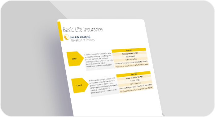 Basic Life Insurance Benefits For Retirees A life insurance policy is a contract with Basic Life Class 1 an insurance company. In exchange for Retired prior to 7/1/1987 premium payments, the insurance Volume: $9,000 company provides a lump-sum payment, 100% DePauw Paid known as a death benefit, to Notice must be given to Sun Life within 30 days of death beneficiaries upon the insured's death. Proof must be given to Sun Life within 90 days of death A life insurance policy is a contract with Basic Life Class 2 an insurance company. In exchange for Retired on or after 7/1/1987 premium payments, the insurance Volume: $3,500 company provides a lump-sum payment, 100% DePauw Paid known as a death benefit, to Notice must be given to Sun Life within 30 days of death beneficiaries upon the insured's death. Proof must be given to Sun Life within 90 days of death This benefit guide only highlights the benefits available. For a more complete description, see the Plan Certificate. 16 If any conflict should arise between this summary and the Plan, the Plan's Certificate will govern in all cases.