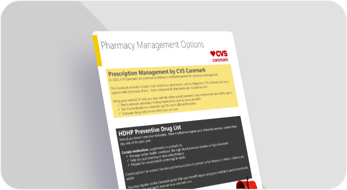 Pharmacy Management Options Prescription Management by CVS Caremark In 2025, CVS Caremark will continue as DePauw’s dedicated partner for pharmacy management. The Caremark network includes most retail chain pharmacies, such as Walgreens, CVS, Walmart and most supermarket pharmacy chains. Some independent pharmacies are included as well. Using your medical ID card, you may visit the online portal (caremark.com) or download the mobile app to: Find a network pharmacy to keep medications cost as low as possible See if a medication is covered to get the most affordable option Compare drug costs to see where you can save HDHP Preventive Drug List Even if you haven’t met your deductible, these medications bypass your deductible and are covered from day one of the plan year: Certain medications, supplements or products to: Manage certain health conditions, like high blood pressure, diabetes or high cholesterol Help you quit smoking or stop using tobacco Prepare for certain health screenings in adults Contraceptives for women; Vaccines and immunizations to prevent certain illnesses in infants, children and adults You may register on the Caremark portal after your benefit begins using your medical ID card to find the full preventive list and much more at www.caremark.com. Caremark Mail-Order Benefit Why get your Rx delivered by mail? With delivery, you have one less thing to worry about. Your 90-day supplies will arrive at your door from CVS Caremark® Mail Service Pharmacy. Filling your Rx in 90-day supplies usually comes with savings. Plus, there’s no extra cost for shipping. Contactless delivery keeps you and your loved ones safe. And our secure, nondescript packaging protects your privacy. Start Rx Delivery by Mail at Caremark.com/RxDelivery (after your benefits begin). This benefit guide only highlights the benefits available. For a more complete description, see the Plan Certificate. 13 If any conflict should arise between this summary and the Plan, the Plan's Certificate will govern in all cases.