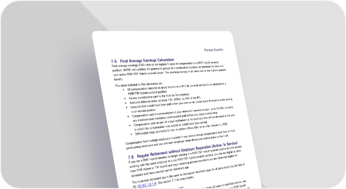 Pension Benefits 7.5 Final Average Earnings Calculation Final average earnings (FAE) refer to the highest 5 years of compensation in a PERF Hybrid covered position. INPRS will combine 20 quarters in groups of 4 consecutive quarters (as mandated by law) over your entire PERF/TRF Hybrid covered career. The resulting average in all cases will be the highest possible benefit. The items included in this calculation are: All compensation reported as gross income on a W-2 for covered service by an employee in a PERF/TRF Hybrid covered position. Pre-tax contributions paid to the Fund by the employer. Amounts deferred under sections 125, 403(b), or 457 of the IRC. Amounts that would have been paid when you were on an unpaid leave of absence while serving in an elected position. Compensation paid in contemplation of your retirement (severance pay), up to $2,000, including any employer-paid mandatory contributions paid before you cease employment. Compensation paid as part of a legal settlement or for back-pay that will be allocated to the year in which the compensation was earned or would have been earned. Differential wage payments for you on active military duty on or after January 1, 2009. Compensation from multiple employers is totaled if you receive annual compensation from two or more participating employers and you and each employer made all required contributions to the Fund. 7.6 Regular Retirement without Employer Separation (Active, In Service) If you are a PERF Hybrid member no longer working in a PERF/TRF Hybrid covered position but still actively working with the same employer in a non PERF/TRF Hybrid covered position, you may be eligible to retire from PERF Hybrid or TRF Hybrid and begin receiving pension benefits if you are otherwise eligible for retirement and have reached normal retirement age. The in-service retirement age is the same as the regular retirement ages for all plans employing the Rule of 85 (35 IAC 1.2-1-4). See section 7.1 for more details. 7.7 Millie Morgan Retirement If you are at least 65 years of age as of June 30, 2023, with at least 20 years of creditable service, you may start receiving your pension benefit effective July 1, 2023, while still working in your PERF Hybrid- covered position. Millie Morgan Retirements cannot be back dated (retro retirement). Once you elect a Millie Morgan Retirement, your election is irrevocable. If you choose to start receiving your pension benefit while still working, you will not earn any more service credit toward retirement. As a Millie Morgan retiree you are not eligible for a second retirement if you terminate and later reemploy. However, you can elect to continue to make contributions to your DC account. School Year Service Credit (PERF) can be applied to a Millie Morgan retirement if the date of hire and Millie Morgan Retirement date are reflective of a full regular school term or contract period for your position. Required Minimum Distribution (RMD) does not apply to Millie Morgan Retirements because you are continuing to work and receive a salary. Public Employees’ Retirement Fund Hybrid Plan Page 31 of 48 Member Handbook Effective: 07/01/2024