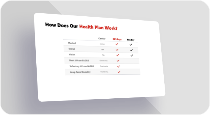 How Does Our Health Plan Work? Carrier RCS Pays You Pay Medical Anthem Dental PBA Vision PBA Basic Life and AD&D OneAmerica Voluntary Life and AD&D OneAmerica Long-Term Disability OneAmerica
