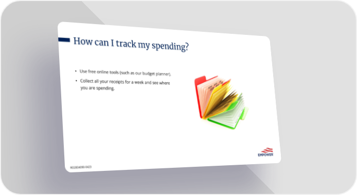 How can I track my spending? • Use free online tools (such as our budget planner). • Collect all your receipts for a week and see where you are spending. RO2834090-0423