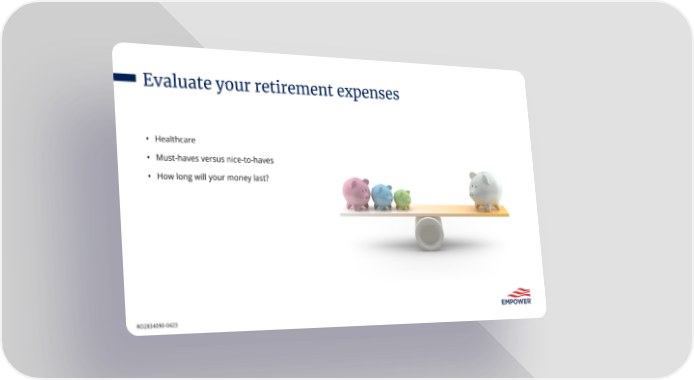 Evaluate your retirement expenses • Healthcare • Must-haves versus nice-to-haves • How long will your money last? RO2834090-0423