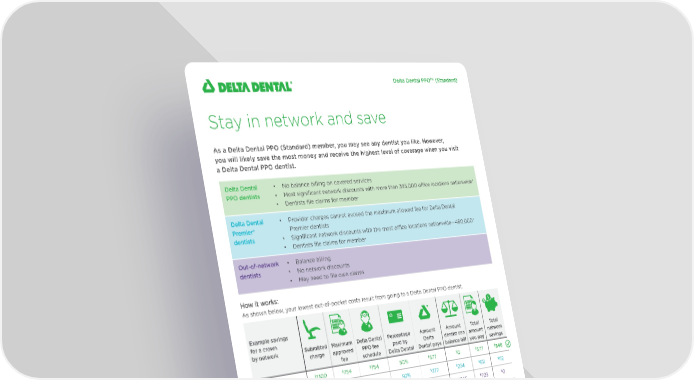 An overview of the benefits and cost savings for Delta Dental PPO (Standard) members when choosing in-network dental care providers versus out-of-network options.