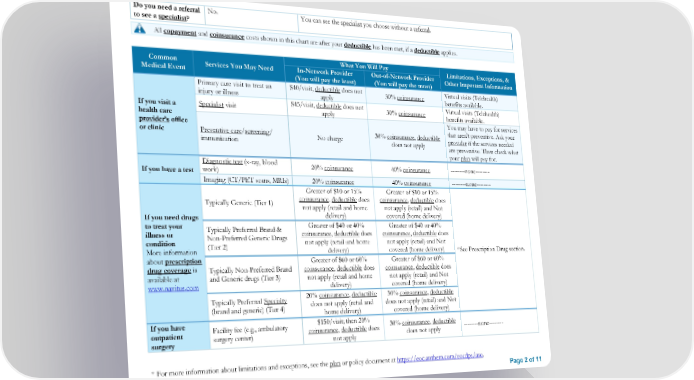Summary of Benefits and Coverage Plan B Page 1 Page 3