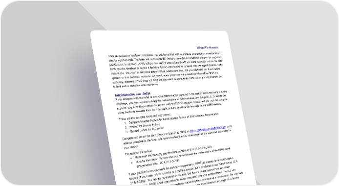 Additional Plan Information Once an evaluation has been completed, you will be notified with an initial or amended determination letter, sent by certified mail. The letter will indicate INPRS’ initial or amended determination and provide supporting justification. In addition, INPRS will provide explicit instructions should you want to appeal. Indiana law sets forth specific timelines to appeal a decision. Should your appeal be received after the appeal deadline, under Indiana law, the initial or amended determination will become final, and you will forfeit any future claims specific to that particular outcome. As noted, many processes and procedures followed by INPRS are statutory, meaning INPRS does not have the discretion to act outside of the law in granting a benefit that federal and/or state law does not permit. Administrative Law Judge If you disagree with the initial or amended determination explained in the section above and want to further challenge, you may request to bring the matter before an Administrative Law Judge (ALJ). To initiate this process, you must file a petition for review with the INPRS Executive Director and you must file a petition using the form available from the Your Right to Administrative Review page on the INPRS website. These are the available forms and instructions: 1. Complete Member Petition for Administrative Review of Staff Action or Determination 2. Petition for Review by ALJ 3. General outline for ALJ review Complete and return the form (Step 1 or Step 2) to INPRS at AdministrativeReviews@INPRS.in.gov or the address provided on the form. It is recommended that you retain copies of the submitted documents for your records. The petition for review: • Must meet the statutory requirements set forth in IC 4-21.5-3-7(a); AND • Must be filed within 15 days after you have received the written notice of the INPRS initial determination letter. (IC 4-21.5-3-7(a)). If your petition for review meets the statutory requirements, INPRS will arrange for an administrative hearing of your case, which is similar to a trial in a lawsuit, but is conducted in less formal manner (IC 4- 21.5-3-25(b)). You may be represented by counsel, but there is no requirement that you obtain representation. INPRS is not responsible for costs associated with your representation. The ALJ who conducts the review will consider the evidence concerning the administrative action/decision. For a detailed outline of the ALJ review process, see the General Outline for Administrative Law Judge (ALJ) Review available on the INPRS website. At the conclusion of the administrative hearing process, the ALJ will issue a Finding of Facts and Conclusions of Law and written order concerning the action or decision that you are challenging (IC 4-21.5- 3-27). The ALJ’s order is then subject to review by the INPRS Executive Director. On behalf of the Board of Trustees, the Executive Director will issue a final order that affirms, modifies, or dissolves the ALJ’s order (IC 4-21.5-3-29(b)). Judicial Review If you are still in disagreement at the conclusion of the administrative review, you may seek judicial review within 30 days of receipt of the final order (IC 4-21.5-5). A reviewing court will examine only those disputed issues of fact that appear in the agency record of the appeal. The trial court may not retry the appeal or substitute its judgment for that of agency (IC 4-21.5-5-11). Teachers' Retirement Fund Hybrid Plan Member Page 45 of 47 Handbook Effective: 07/01/2024