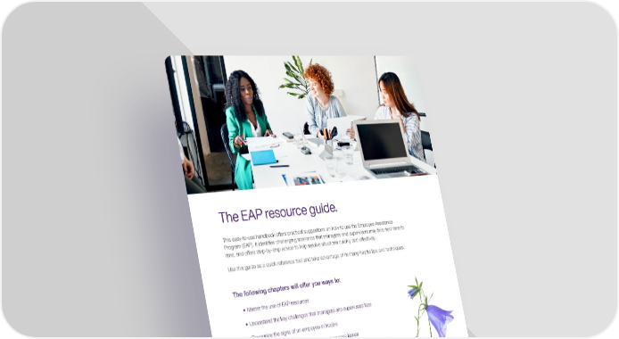 P. 3 The EAP resource guide. This easy-to-use handbook offers practical suggestions on how to use the Employee Assistance Program (EAP). It identifies challenging scenarios that managers and supervisors may face from time to time, and offers step-by-step advice to help resolve situations quickly and effectively. Use this guide as a quick reference tool and take advantage of its many helpful tips and techniques. • Master the use of EAP resources • Understand the key challenges that managers and supervisors face • Recognize the signs of an employee in trouble • Prepare for, and deal with, employee performance issues • Deal with other difficult employee-related situations • Use preventative tools to promote a healthy workplace The following chapters will offer you ways to: