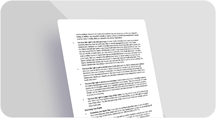 134 Federal Notice communications, however; the Claims Administrator may also require you confirm your request in writing. In addition, any requests to modify or cancel a previous confidential communication request must be made in writing. Mail your request to the address listed below. • You have the right to see and get a copy of certain health information the Claims Administrator maintains about you such as claims and case or medical management records. If the Claims Administrator maintains your health information electronically, you will have the right to request that the Claims Administrator send a copy of your health information in an electronic format to you. You can also request that the Claims Administrator provide a copy of your information to a third party that you identify. In some cases, you may receive a summary of this health information. You must make a written request to inspect and copy your health information or have your information sent to a third party. Mail your request to the address listed below. In certain limited circumstances, the Claims Administrator may deny your request to inspect and copy your health information. If the Claims Administrator denies your request, you may have the right to have the denial reviewed. The Claims Administrator may charge a reasonable fee for any copies. • You have the right to ask to amend certain health information the Claims Administrator maintains about you such as claims and case or medical management records, if you believe the health information about you is wrong or incomplete. Your request must be in writing and provide the reasons for the requested amendment. Mail your request to the address listed below. If the Claims Administrator denies your request, you may have a statement of your disagreement added to your health information. • You have the right to receive an accounting of certain disclosures of your information made by the Claims Administrator during the six years prior to your request. This accounting will not include disclosures of information made: (i) for treatment, payment, and health care operations purposes; (ii) to you or pursuant to your authorization; and (iii) to correctional institutions or law enforcement officials; and (iv) other disclosures for which federal law does not require the Claims Administrator to provide an accounting. • You have the right to a paper copy of this notice. You may ask for a copy of this notice at any time. Even if you have agreed to receive this notice electronically, you are still entitled to a paper copy of this notice. You also may get a copy of this notice on your health plan website, such as www.myuhc.com. Exercising Your Rights • Contacting your Health Plan. If you have any questions about this notice or want information about exercising your rights, please call the toll- free member phone number on your health plan ID card or you may call the Claims Administrator at 1-866-633-2446 or TTY 711. • Submitting a Written Request. You can mail your written requests to exercise any of your rights, including modifying or cancelling a confidential communication, for copies of your records, or requesting amendments to your record, to the Claims Administrator at the following address: UnitedHealthcare Customer Service - Privacy Unit PO Box 740815 Atlanta, GA 30374-0815 • Timing. The Claims Administrator will respond to your telephonic or written request within 30 business days of receipt. • Filing a Complaint. If you believe your privacy rights have been violated, you may file a complaint with the Claims Administrator at the address listed above.