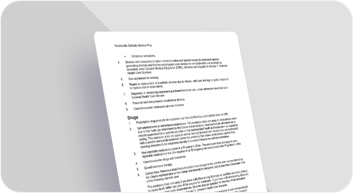 Noblesville Schools Medical Plan 58 Section 2: Exclusions and Limitations ▪ Ultrasonic nebulizers. 4. Devices and computers to help in communication and speech except for dedicated speech- generating devices and tracheo-esophageal voice devices for which Benefits are provided as described under Durable Medical Equipment (DME), Orthotics and Supplies in Section 1: Covered Health Care Services. 5. Oral appliances for snoring. 6. Repair or replacement of prosthetic devices due to misuse, malicious damage or gross neglect or to replace lost or stolen items. 7. Diagnostic or monitoring equipment purchased for home use, unless otherwise described as a Covered Health Care Service. 8. Powered and non-powered exoskeleton devices. 9. Over-the-counter continuous glucose monitors. Drugs 1. Prescription drug products for outpatient use that are filled by a prescription order or refill. 2. Self-administered or self-infused medications. This exclusion does not apply to medications which, due to their traits (as determined by the Claims Administrator), must typically be administered or directly supervised by a qualified provider or licensed/certified health professional in an outpatient setting. This exclusion does not apply to certain hemophilia treatment centers that are contracted with a specific hemophilia treatment center fee schedule that allows medications used to treat bleeding disorders to be dispensed directly to Covered Persons for self-administration. 3. Non-injectable medications given in a Physician's office. This exclusion does not apply to non- injectable medications that are required in an Emergency and used while in the Physician's office. 4. Over-the-counter drugs and treatments. 5. Growth hormone therapy. 6. Certain New Pharmaceutical Products and/or new dosage forms until the date as determined by the Claims Administrator or the Claims Administrator's designee, but no later than December 31st of the following calendar year. This exclusion does not apply if you have a life-threatening Sickness or condition (one that is likely to cause death within one year of the request for treatment). If you have a life-threatening Sickness or condition, under such circumstances, Benefits may be available for the New Pharmaceutical Product to the extent provided in Section 1: Covered Health Care Services. 7. A Pharmaceutical Product that contains (an) active ingredient(s) available in and therapeutically equivalent (having essentially the same efficacy and adverse effect profile) to another covered Pharmaceutical Product. Such determinations may be made up to six times during a calendar year. 8. A Pharmaceutical Product that contains (an) active ingredient(s) which is (are) a modified version of and therapeutically equivalent (having essentially the same efficacy and adverse effect profile) to another covered Pharmaceutical Product. Such determinations may be made up to six times during a calendar year. 9. A Pharmaceutical Product with an approved biosimilar or a biosimilar and therapeutically equivalent (having essentially the same efficacy and adverse effect profile) to another covered Pharmaceutical Product. For the purpose of this exclusion a "biosimilar" is a biological Pharmaceutical Product approved based on showing that it is highly similar to a reference product (a biological Pharmaceutical Product) and has no clinically meaningful differences in terms of safety and effectiveness from the reference product. Such determinations may be made up to six times per calendar year.