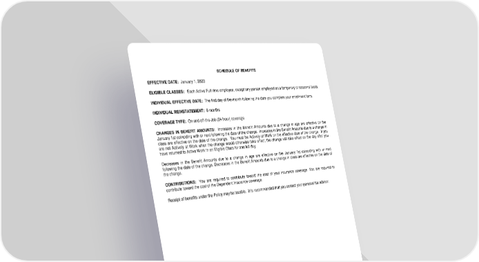 SCHEDULE OF BENEFITS EFFECTIVE DATE: January 1, 2023 ELIGIBLE CLASSES: Each Active Full-time employee, except any person employed on a temporary or seasonal basis. INDIVIDUAL EFFECTIVE DATE: The first day of the month following the date you complete your enrollment form. INDIVIDUAL REINSTATEMENT: 6 months COVERAGE TYPE: On and off-the-Job (24 hour) coverage CHANGES IN BENEFIT AMOUNTS: Increases in the Benefit Amounts due to a change in age are effective on the January 1st coinciding with or next following the date of the change. Increases in the Benefit Amounts due to a change in class are effective on the date of the change. You must be Actively at Work on the effective date of the change. If you are not Actively at Work when the change would otherwise take effect, the change will take effect on the day after you have returned to Active Work in an Eligible Class for one full day. Decreases in the Benefit Amounts due to a change in age are effective on the January 1st coinciding with or next following the date of the change. Decreases in the Benefit Amounts due to a change in class are effective on the date of the change. CONTRIBUTIONS: You are required to contribute toward the cost of your insurance coverage. You are required to contribute toward the cost of the Dependent Insurance coverage. Receipt of benefits under the Policy may be taxable. It is recommended that you contact your personal tax advisor. LRS-9548-0318-IN Page 1.0