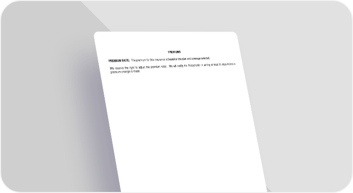 PREMIUMS PREMIUM RATE: The premium for this insurance is based on the plan and coverage selected. We reserve the right to adjust the premium rates. We will notify the Policyholder in writing at least 31 days before a premium change is made. LRS-9548-0318-IN Page 11.0