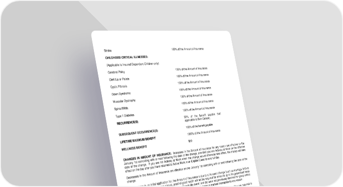 Stroke 100% of the Amount of Insurance CHILDHOOD CRITICAL ILLNESSES: (Applicable to Insured Dependent Children only) Cerebral Palsy 100% of the Amount of Insurance Cleft Lip or Palate 100% of the Amount of Insurance Cystic Fibrosis 100% of the Amount of Insurance Down Syndrome 100% of the Amount of Insurance Muscular Dystrophy 100% of the Amount of Insurance Spina Bifida 100% of the Amount of Insurance Type 1 Diabetes 100% of the Amount of Insurance RECURRENCE(S) 50% of the benefit payable (not applicable to Skin Cancer) SUBSEQUENT OCCURRENCE(S) 100% of the benefit payable LIFETIME MAXIMUM BENEFIT 1000% of the Amount of Insurance WELLNESS BENEFIT $50 CHANGES IN AMOUNT OF INSURANCE: Increases in the Amount of Insurance for any reason are effective on the January 1st coinciding with or next following the date of the change, provided you are Actively at Work on the effective date of the change. If you are not Actively at Work when the change would otherwise take effect, the change will take effect on the day after you have returned to Active Work in an Eligible Class for one full day. Decreases in the Amount of Insurance are effective on the January 1st coinciding with or next following the date of the change. If an increase in, or initial application for, the Amount of Insurance is due to a life event change (such as marriage, birth or specific changes in employment status), proof of good health will not be required for amounts up to the guaranteed issue amount, provided you: (a) apply within 31 days of such life event; and (b) were not previously declined for group critical illness coverage with us; and (c) did not have a prior application withdrawn or marked incomplete for any reason. CONTRIBUTIONS: You are required to contribute toward the cost of your insurance coverage. You are required to contribute toward the cost of the Dependent insurance coverage. Receipt of benefits under the Policy may be taxable. It is recommended that you contact your personal tax advisor. LRS-9538-1-0118 Page 1.1