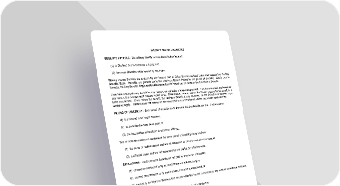 WEEKLY INCOME INSURANCE BENEFITS PAYABLE: We will pay Weekly Income Benefits if an Insured: (1) is Disabled due to Sickness or Injury; and (2) becomes Disabled while insured by this Policy. Weekly Income Benefits are reduced by any income from all Other Sources as listed below and payable from the Day Benefits Begin. Benefits are payable up to the Maximum Benefit Period for one period of disability. Weekly Income Benefits, the Day Benefits Begin and the Maximum Benefit Period can be found on the Schedule of Benefits. If we have underpaid any benefit for any reason, we will make a lump sum payment. If we have overpaid any benefit for any reason, the overpayment must be repaid to us. At our option, we may reduce the Weekly Income Benefit or ask for a lump sum refund. If we reduce the benefit, the Minimum Benefit, if any, as shown on the Schedule of Benefits page, would not apply. Interest does not accrue on any underpaid or overpaid benefit unless required by applicable law. PERIOD OF DISABILITY: Each period of disability starts from the first day benefits are due. It will end when: (1) the Insured is no longer disabled; (2) all benefits due have been paid; or (3) the Insured has retired from employment with you. Two or more disabilities will be deemed the same period of disability if they are from: (1) the same or related causes and are not separated by one (1) week of active work; or (2) a different cause and are not separated by one (1) full day of active work. EXCLUSIONS: Weekly Income Benefits are not paid for any period of disability: (1) caused or contributed to by an intentionally self-inflicted Injury; or (2) caused or contributed to by an act of war, declared or undeclared; or (3) caused by an Injury or Sickness that occurs while the Insured is confined to any penal or correctional institution; or (4) while the Insured is confined in any penal or correctional institution; or (5) caused or contributed to by the Insured committing a felony; or (6) caused or contributed to by Sickness which is covered by a Workers' Compensation Act, or other worker's disability law; or (7) caused or contributed to by Injury which occurs out of or in the course of work for wage or profit; or (8) caused or contributed to by any of the following: (a) cosmetic surgery or treatment primarily to change appearance; (b) in vitro fertilization; (c) embryo transfer procedures; (d) artificial insemination; (e) reversal of sterilization; (f) liposuction; or (g) radial keratotomy. LRS-6451-8-0113 Page 7.0