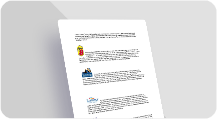 Howard Johnson ® offers what its guest s need, when they need it, and how they want it! With amenities that include all the Comforts of Home like a 25inch television, coffeemaker, AM/FM radio, free longdistance access, voicemail, hair dryer, iron ironing board and a free weekday newspaper to its complimentary Rise and Dine breakfast, Howard Johnson ® has got you covered. With more than 2,000 motels throughout North America, and a strategic expansion plan in place for China, chances are that somewhere between where you are and where you are going, there’s a Super 8 ® . See you along the way TM . All Super 8 ® motels provide free continental breakfast and highspeed Internet access. Free coffee is available to all travelers whether they are guests or not, when they bring in a Super 8 coffee mug. Participating motels allow pets and offer free local calls, fax and copy services, microwaves, suites, guest laundry, an exercise facility, cribs and rollaway beds. Kids 17 and under stay free with an adult family member. For travelers on a tight budget who love to discover their world without having to spend a lot, Travelodge ® is the perfect crash pad when you want to soak up life. It provides the best of the basics. Unlike our econobox competitors, our product was inspired by a bear—to speak to the bear in all of us…reminding us to play hard by day and sleep even harder by night. All Travelodge Hotels, Travelodge, and Travelodge Suites rooms include highspeed Internet, free inroom coffee, complimentary Bear Bites Breakfast where available, free weekday lobby newspaper and rooms with a 25inch television including free sports, movie and news programming Baymont Inn & Suites ® exceptional service with a wide range of popular amenities, at an affordable price offered nationwide, such as: Complimentary continental breakfast featuring waffles and French toast, Free Highspeed Internet access (some wireless), Express checkin and checkout, and more. Baymont Inn & Suites ® hotels are located in the United States. Each hotel offers free local calls, free long distance access, inroom coffee maker, iron and board, hair dryer and shampoo, television with premium channels, payperview movies and/or satellite movies and video games and express checkin and checkout. Most locations feature swimming pool, fitness center and airport shuttle service at airport locations Every Knight, Just Right ® . At Knights Inn we pride ourselves on exceeding your expectations through friendly service and exceptional value. And now we have found one more way to make your stay with us as comfortable as possible. After a great night's sleep there's no better way to start the day off right than with a complimentary continental breakfast. Join us for a hot drink, juice and a bite to eat we'll see you in the morning. Travel Deals for Members Now save on rooms at 11 brands and nearly 7,000 participating hotels worldwide. Hotel Discount Offer