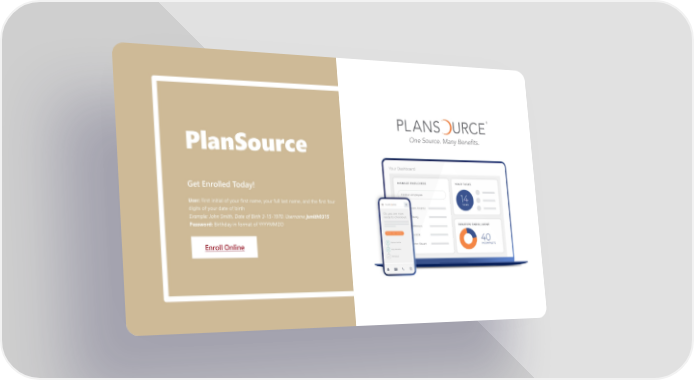 PlanSource Get Enrolled Today! User: First initial of your first name, your full last name, and the first four digits of your date of birth Example: John Smith, Date of Birth 3-15-1970. Username jsmith0315 Password: Birthday in format of YYYYMMDD Enroll Online